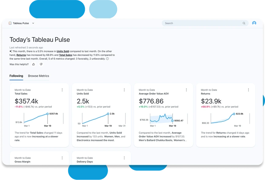 深度集成Office 365、Teams、SharePoint等,可在Teams中嵌入看板、在Outlook中推送报告,让数据分析融入日常办公流,最大化微软资产价值,业务人员通过拖拽即可完成从数据连接、建模到可视化分析的全流程,无需依赖IT。内置AI功能,进一步降低分析门槛,支持连接超过100种数据源,并提供40+种可视化图表和强大的交互体验,如跨图表联动、钻取分析等。