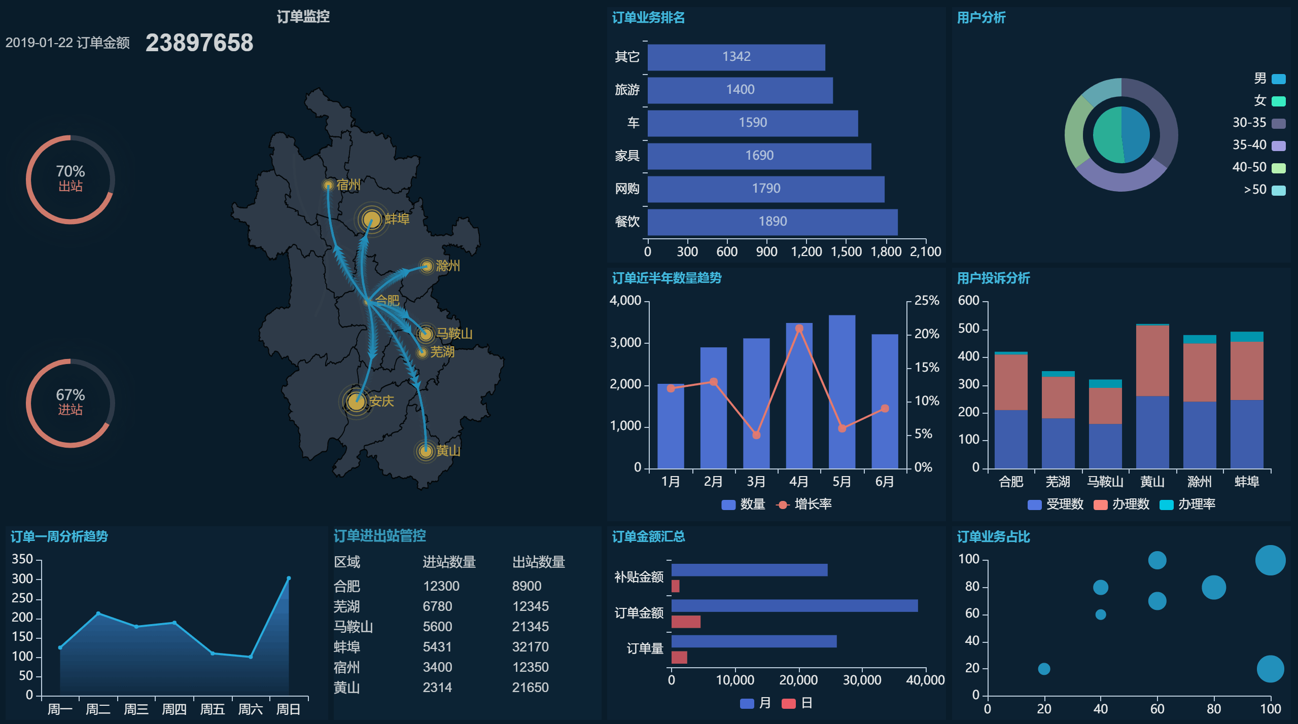 | 设计灵活,易于上手 | 采用类Excel的操作界面和拖拽式设计,业务人员也能快速上手,实现所见即所得的设计效果。 | 提供类Excel页面和拖拽式大屏设计器,支持HTML5图表,可在浏览器中直接完成设计、预览。 |